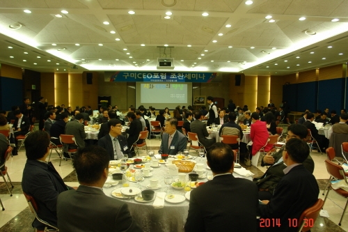 구미상공회의소 와 DGB금융그룹(회장 박인규)은 지난달 30일 오전 7시 30분부터 오전 9시까지 상공회의소 2층 대강당에서 남유진 구미시장, 이태형 구미소방서장, 경북신용보증재단 김종규 이사장, 국민건강보험공단 이정희 지사장, 향토예비군 구미산단여단 이춘로 여단장, 중소기업진흥공단 경북지역본부 김중교 본부장을 비롯해 구미 관내 기업인 160여명이 참석한 가운데 “제19회 구미CEO포럼 조찬세미나”를 가졌다.