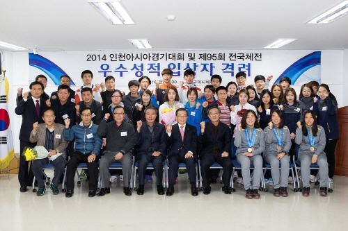 이날 인천아시안게임에서의 메달을 획득한 육상의 박봉고, 임은지 선수를 비롯해 볼링의 김진선 선수가 참석했으며, 입상자 및 지도자에게는 포상금 및 격려금이 전달됐다.