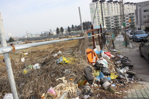출근길에 매일 이곳을 지난다는 A씨는 “고가도로에서 보면 쓰레기장을 방불케하는 학교부지가 한눈에 들어온다”며 “도심한복판이 흉물스럽게 방치되고 있어 누가 볼까봐 창피할 정도다”고 말했다.