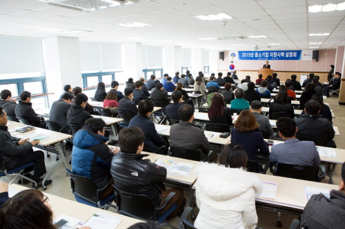 구미시는 4일 구미시종합비즈니스지원센터 대회의실에서 중소기업대표 100여명이 참석한 가운데“2015년도 중소기업 지원시책 설명회”를 가졌다.
