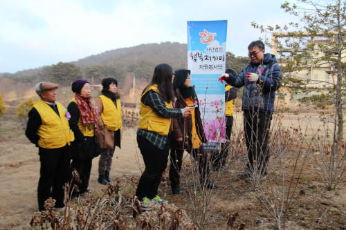 (사)자원봉사단 만남 구미지부 행복지키미 자원봉사단(이하 행복지키미봉사단)은 지난 5일 박형순 무궁화 박사와 김건호 천리포수목원 식물자원연구팀장으로부터 대봉수목원과 천리포수목원의 무궁화재배법 실습을 받았다.