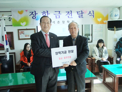 2015년 석촌 장학회(이사장 박두호)가 9일 인동동에 있는 장학회 3층 사무실에서 남녀 장학생 7명과 영덕지역 16명등 총 23명에게 9백만원의 장학금을 전달했다.