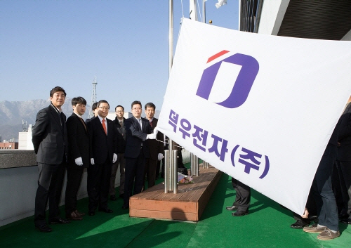 구미시는 3월 이달의 기업으로 덕우전자(주)(대표 이재민)를 선정하고 3월 2일 시청 국기게양대 앞에서 남유진 구미시장과 해당 기업의 이준용 덕우전자(주) 부사장 등 30여명이 참석한 가운데 사기(社旗) 게양식을 가졌다.