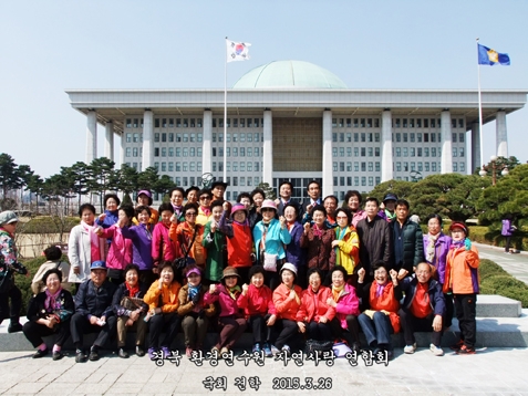 이날 오전 8시, 구미를 출발해 11시 국회에 도착한 회원들은 관계자로부터 설명을 듣고, 국회 식당에서 오찬을 마친 후 국회 현관 앞에서 40여명씩 8개팀으로 나눠 기념촬영을 했다.이어 충남 천안 옥천으로 이동한 회원들은 독립기념관을 견학했다.