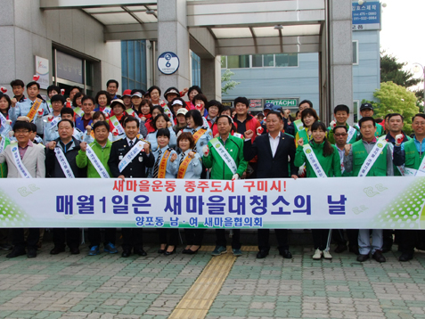 박태병 동장, 권영두 양포동 파출소장, 이홍희 도의원, 권기만 부의장, 윤종호▪한성희 시의원, 새마을 남녀 지도자 협의회장, 통장 협의회장, 자율방범대장과 회원등 200여명이 참석한 가운데 실시된 새마을 대청소는 올바른 시민 의식 고취에 무게를 뒀다.