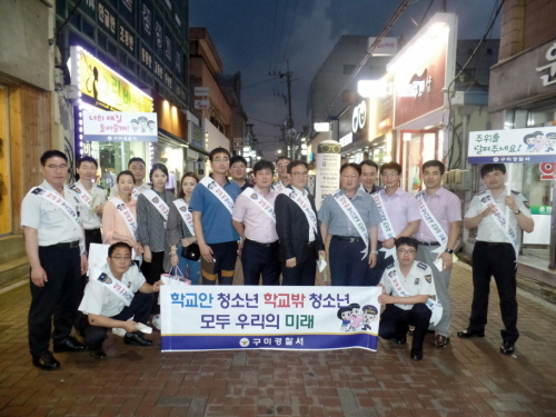 구미경찰서(서장 이준식)는 지난 2일 구미시 원평동 2번 도로에서 구미경찰서청소년 선도심사위원회, 구미시 태권도협의회, 구미대학교 강상호 스포츠건강관리과 교수와 학생, 경찰관 등 30여명이 참석한 가운데 학교 밖 청소년 지원을 위한 캠페인을 실시했다.