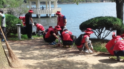 금오산 도립공원관리사무소는 16일 구미시 해병 전우회 회원과 공원 관리 사무소 직원, 사회복무요원 등이 참여한 가운데 금오지 부유물 제거 작업 및 환경 정비활동을 실시했다.