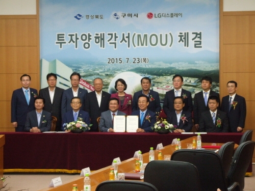 구미시와 LG 디스플레이(주)가 23일 투자 양해 각서 체결식을 통해 1조5백억원 규모의 플렉서블 OLED(유기발광 다이오드) 신규투자 계획을 공식 발표했다.