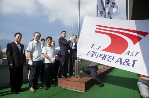 구미시가 8월의 기업으로 (주)태진A&T를 선정하고, 지난 3일 시청 국기게양대 앞에서 박의식 구미시 부시장과 장정희 (주)태진A&T 대표이사 등 30여명이 참석한 가운데 사기 게양식을 가졌다.