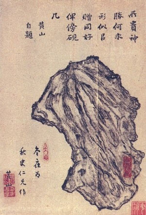 이 그림에 돌은 응어리진 단단함과 오래 가는 믿음성이 덕목이다. 게다가 침묵한다. 근신하는 선비의 벗이 되기에 족하다. 지금 보이는 돌은 할머니 뱃가죽처럼 주름투성이다. 울퉁불퉁하기는 굴 껍질 같고, 위는 넓고 아래가 좁아서 기우뚱하다. 생긴 꼴이 괴상해서 괴석이다. 산이나 동물 형상, 아니면 꽃무늬마냥 유별난 수석도 많은데 굳이 못난이 돌을 그린 까닭이 뭔가. 그림에 김유근이 사연을 썼다. '정신이 뛰어나서 귀한데 하필 모양 닮은 것을 찾겠는가. 함께 좋아할 듯해서 보내니 벼루 놓인 곳에 두게나.' 라고 적혀있다. 흙은 바스러지고 나무는 휜다. 돌은 생김새가 안 바뀐다. 하지만 찧고 갈고 다듬는 수석 애호가도 있다. 이리 되면 교언영색(巧言令色)이다. 돌의 미쁨은 성형수술하지 않는 데 있다. 모름지기 돌의 마음을 새길 일이다. 이 그림을 그린 이는 김유근이다. 그림 밑에 '겨울 밤 추사(秋史) 김정희(金正喜) 자네를 위해 그렸네.' 라고 썼다. 그는 친구인 김정희에게 선물했다. 김유근이 김정희를 얼마나 좋아했는지를 알 수 있다. 친교를 담은 돌 하나가 좋은 우정을 간직하도록 하였다.