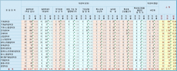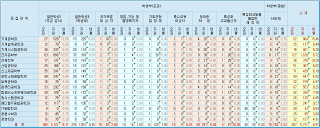 지난해 814명 모집에 6천 474명이 지원, 평균 7.95대1의 경쟁률을 보인 것과 비교하면 다소 하락했다.