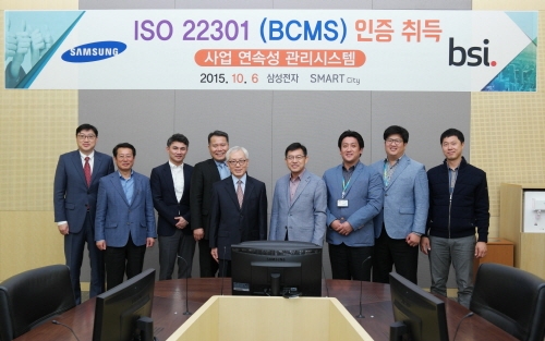 삼성전자 스마트 시티(공장장 심원환)가 6일 국제인증기관인 BSI(British Standard Institution)로부터 사업 연속성 관리 시스템 부문 국제규격인ISO 22301 인증을 취득했다.