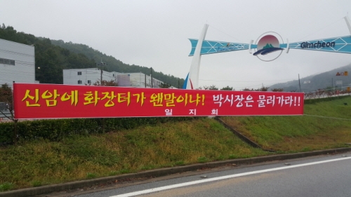 “주민의견 수렴 절차 조차 무시한 채 건립 예정지로 확정한 시의 처사를 밀어붙이기식 행정의 표본”이라고 규정한 주민들이 “마을 발전기금 50억원도 필요 없다”면서 집단행동에 돌입키로 했기 때문이다.