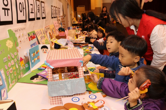 구미·김천지역 유치원과 어린이집 유아 2천100여 명을 초청한 이번 행사는 총 3회의 무대공연과 학생들이 손수 만든 형형색색의 교과교구전이 열렸다.