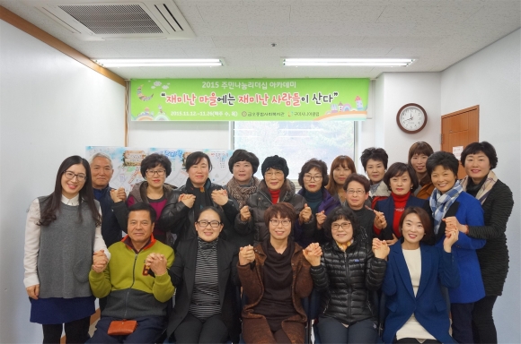 아카데미는 ‘재미난 마을에는 재미난 사람들이 산다’라는 주제로 주민복지와 공동체 의식을 다질 수 있는 총5회기 10시간 과정으로 진행됐다. 특히 교육 참여자들 대부분이 지역에서 복지분야의 리더 역할을 할 수 있는 주민단체 회원과 자원봉사자들로 구성돼 교육에 대한 열의가 높았고 교육성과 조사에서도 높은 점수를 나타냈다.
