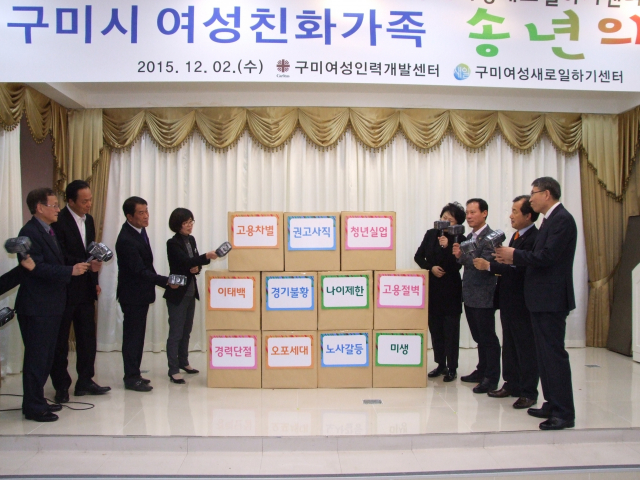 여성친화도시 구미와 고용대박을 케치프레이즈로 내건 행사는 구미지역의 여성고용창출을 위해 노력한 기업체 관계자들에 대한 감사의 뜻을 담은 시상식과 경력단절의 어려움을 이겨내고 취업에 성공한 구직자들의 성공사례 발표, 고용절벽 극복을 위한 퍼포먼스등의 순으로 진행됐다.