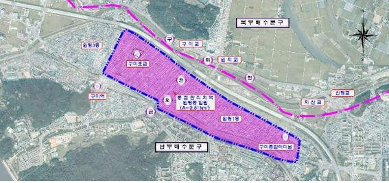 원평동 목화예식장 일원은 저지대로서 우수 관로 통수능력부족 및 구미천 수위 상승 시 내수배제 불량 등으로 매년 집중 호우 시 상습적으로 침수가돼 도로 및 상가 주택지의 침수 피해가 발생하는 등 지역 주민들의 민원이 지속적으로 제기됐다.