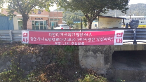 “청정 마을에 레미콘 공장이 웬말이냐”, “대망리가 쓰레기 집합소냐” “3선 구미시장, 이래도 되나, 다음번엔 국물도 없다”