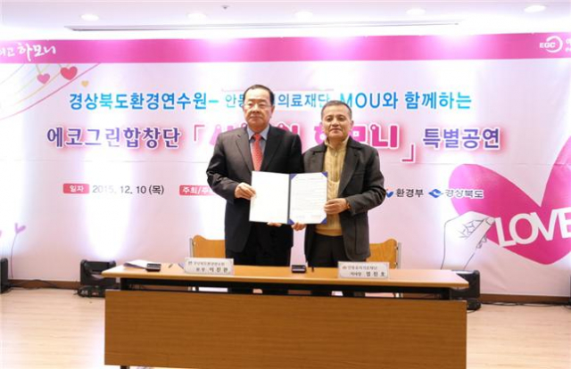 경상북도환경연수원(원장 이진관)이 지난 10일 안동유리의료재단(이사장 염진호)과 인간, 자연, 환경사랑을 통한 도민행복시대 정착을 위한 업무협약을 체결했다.