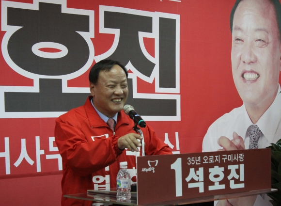 아울러 개소식 개회선언, 국민의례, 내빈소개, 각계 인사의 축사, 후보자 경력소개, 후보자 인사, 꽃다발 증정, 축하케익 절단 순으로 진행된 개소식에서 참석한 시민과 당원들은 시종일관, 도농 통합도시 구미발전을 위한 각계인사의 주문과 석호진 후보가 밝힌 구미발전 방향을 경청하는 등 깊은 관심을 보였다.