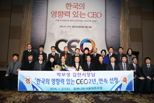 박보생 김천시장이 지난 27일, 서울시 밀레니엄 서울힐튼호텔에서 열린 2016 한국의 영향력 있는 CEO 혁신경영부문 대상에 선정됐다.
