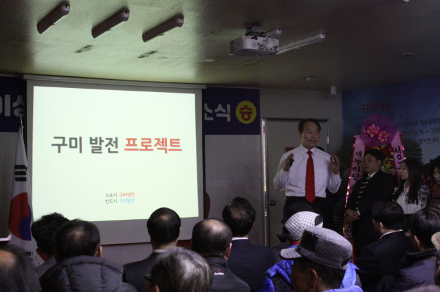 이성춘 후보는 인사말을 통해 “큰 기업은 떠나고, 공장 가동률은 점점 낮아지고, 인구도 줄어드는 등 구미의 경제가 어려워 시민들의 웃음이 사라진지 오래”라며 “이제는 선거혁명을 통하여 구미의 재활을 도모할 수 있는 참 일꾼을 뽑아야 한다”고 강조했다.