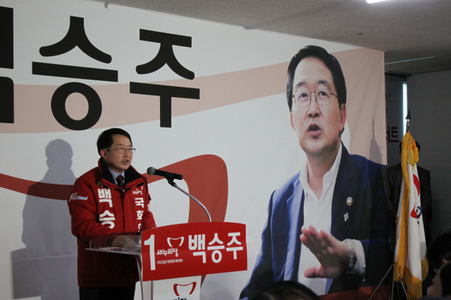 “백승주 후보를 성원해 달라”는 국회의원들의 축사에 이어 단상에 오른 백 후보는 인사말을 통해 “박정희 대통령의 정신을 계승하고, 2년 7개월간 국방부 차관으로 몸담았던 박근혜 정부의 성공이라는 시대적 사명감과 어려움에 처해 있는 고향 구미경제를 살려야 한다는 절실한 심정으로 이 자리에 섰다”고 강조하고 “구미가 아프면 영남이 아프고, 영남이 힘들면 대한민국이 힘들다, 구미가 일어나야 영남과 대한민국이 일어설 수 있다”면서 “2013년 수출 370억불의 신화를 만들었던 구미의 영광을 재현하는데 모든 것을 걸겠다”고 각오를 다졌다.