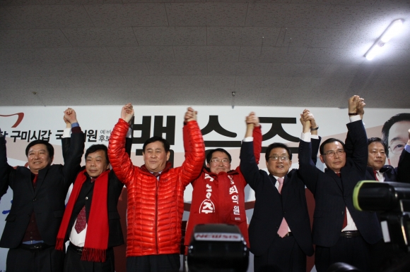 개소식에는 최경환, 김태환, 이한성, 김재원, 이완영 국회의원과 김익수 구미시의회 의장, 윤창욱 경북도의회 부의장을 비롯한 새누리당 구미갑구 소속 도▪시의원이 참석해 백후보에게 힘을 실었다.