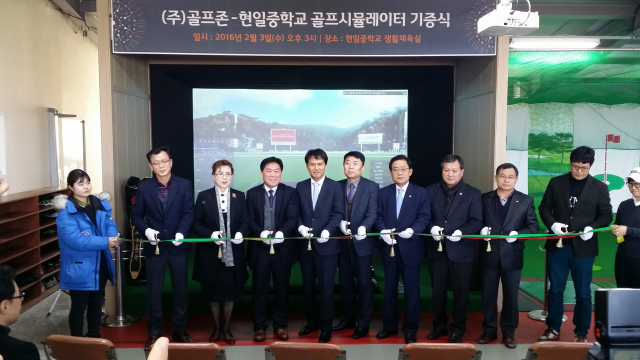 ㈜골프존(대표이사 장성원)이 3일 현일중학교(교장 장상용)에 학교체육 활성화를 위해 골프시뮬레이터를 기증했다.