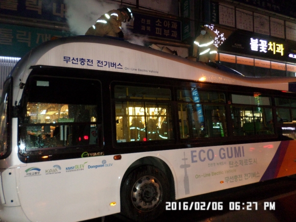 지난 6일 오후 5시 25분경, 구미시 원평동 구미역 앞 1번 도로를 경유하던 무선충전 전기버스의 배터리가 부착된 천장에서 연기가 발생하는 사고가 일어났다. 당시 차안에는 10여명의 승객이 있었으나 다행히 인명피해는 없었다. 4일 뒤인 10일에는 또 다른 전기버스의 베터리 미충전으로 운행을 할수 없었던 것으로 알려졌다.