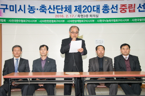구미시 농․축산 단체가 17일 제20대 총선과 관련해 성명서를 발표하고 중립입장을 공식 선언했다.
