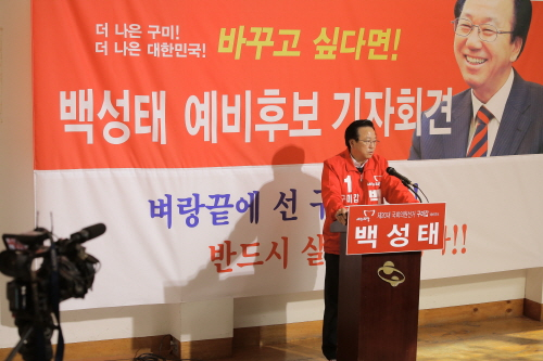 새누리당 백성태 구미갑 예비후보가 7일, 구미시청 열린나래실에서 기자회견을 갖고, 시도의원들의 특정 후보 지지활동에 대해 강력히 비판했다.