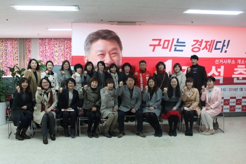 장석춘 구미시 을 새누리당 예비후보가 9일 최근 보육문제로 어려움을 겪고 있는 민간어린이집 운영문제점 등을 살펴보기 위해 선거사무소를 방문한 구미시 민간 어린이집연합회(회장 이지은) 회원들과 함께 시급한 현안문제점들에 대해 논의했다. 또 장후보는 근무여건 실태조사와 처우개선 방안을 약속했다.