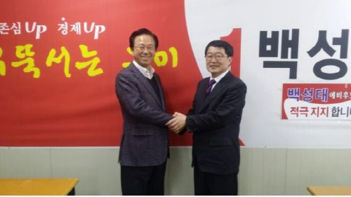 | ↑↑ 오른쪽 백성태 후보, 왼쪽 백승주 후보 |