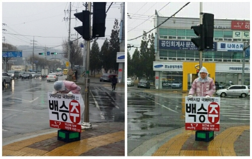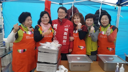 제20대 총선 새누리당 구미갑 후보로 공천 받은 백승주 예비후보가 공천 확정 전부터 시작한 ‘아침 및 저녁, 길거리 인사’와 병행해 매주 실시하고 있는 대한민국 써포터즈 봉사단 무료급식 봉사에 참여하는 등 일관된 선거운동 행보를 해 오고 있다.