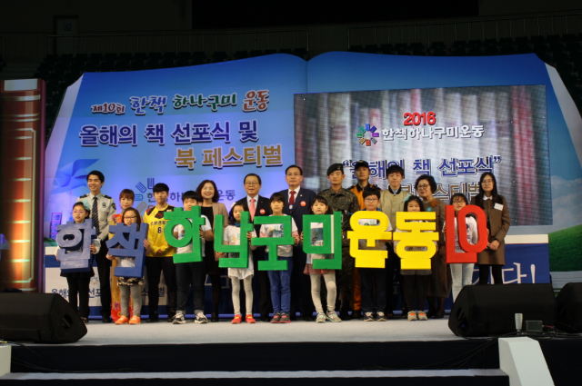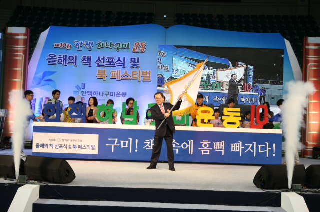 구미시가 15일 박정희체육관에서 제10회 ‘한책 하나구미 운동’ 올해의 책 선포식 및 북 페스티벌을 개최했다.