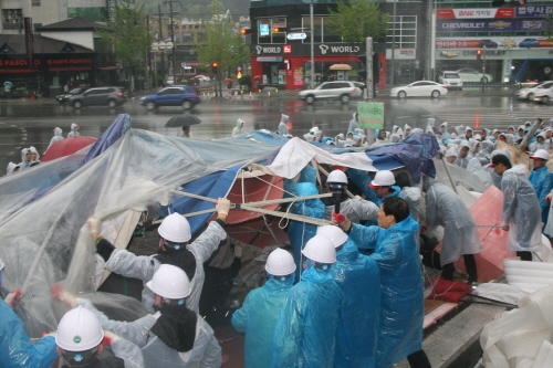 한편 시는 아사히 쪽에도 직원 400여명을 동원해 천막 4개를 철거했으며 이 과정에서 차헌호 지회장 등 노조원 4명이 공무집행방해 혐의로 경찰에 연행됐다.