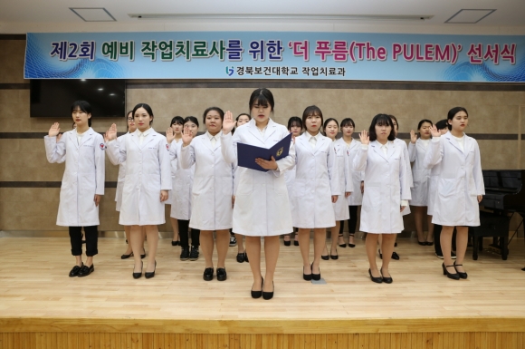 경북보건대학교(총장 이은직) 작업치료과가 21일 예비 작업치료사를 위한 ‘제2회 더 푸름(The PULEM) 선서식’을 교내 목인관 시청각실에서 가졌다.