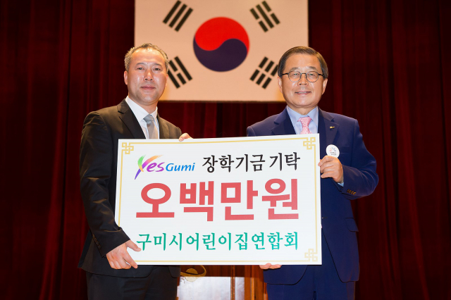 교육에 앞서, 어린이집연합회 회원들이 십시일반으로 마련한 장학금 500만원을 구미시 인재양성을 위해 구미시장학재단에 기탁했다.