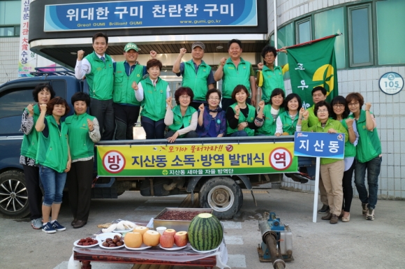 배영숙 지산동장은 “지산샛강, 낙동강 구미천 뿐만 아니라 지산뒷산 등 취약지역이 많아 지역주민의 건강과 위생을 증진시키는 데에는 새마을자율방역단의 역할이 매우 중요한 만큼 여름철 방역소독에 최선을 다해 해충 없는 살기 좋은 지산동을 만들어 줄 것과 안전사고 예방에 주의할 것”을 당부했다.