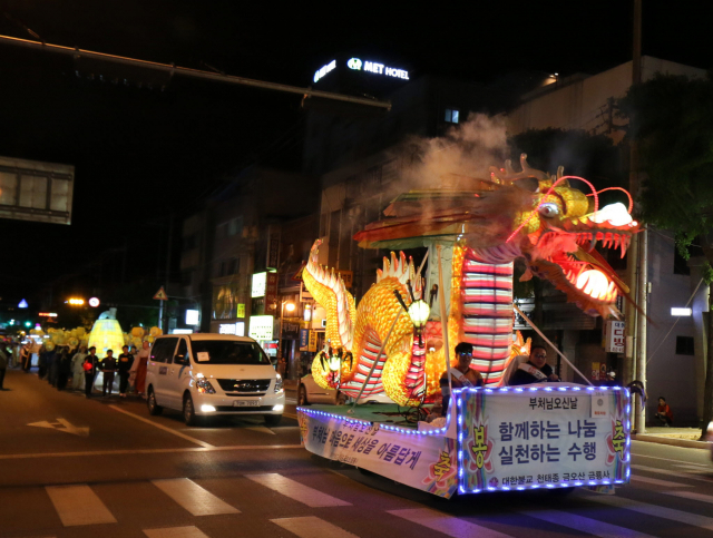 구미부처님오신날 봉축위원회가 주최하고 구미불교사암연합회(회장 보광 스님)가 주관한 연등축제에는 박의식 부시장을 비롯해 백승주 국회의원 당선자, 윤창욱 경북도의회 부의장, 김대현 구미경찰서장, 이기웅 구미불교신도연합회장과 구미불교사암연합회 각 사찰 스님 및 회원과 시민 등 500여명이 참여했다.