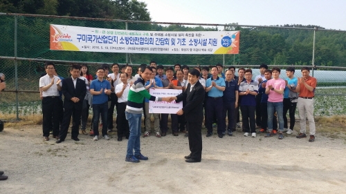 정보교류 및 유대를 강화하고, 화재 없는 산업장 만들기에 최선을 다할 것을 다짐한 간담회에 이어 70여명은 취약계층 주택용 소방시설 설치 촉진을 위한 기초소방시설인 소화기와 단독경보형감지기 각300대를 기증했다.