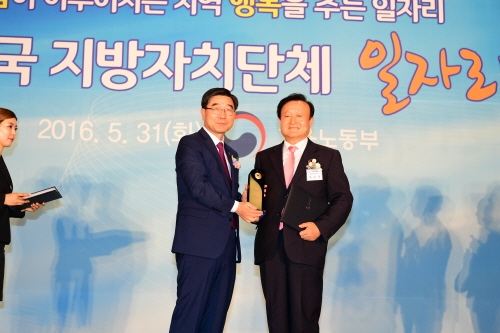 김천시가 지난달 31일 고용노동부 주관으로 서울 코엑스에서 열린 ‘2016 전국 지방자치단체 일자리 대상’시상식에서 최우수 기관으로 선정돼 표창과 함께 상사업비 1억원을 받았다.