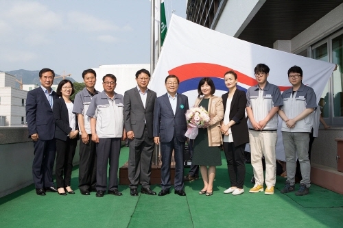 구미시가 이달의 기업으로 인당(주)(대표 서인숙)을 선정하고, 1일 국기게양대앞에서 남유진 시장과 서인숙 인당(주) 대표 등 30여명이 참석한 가운데 사기게양식을 가졌다.