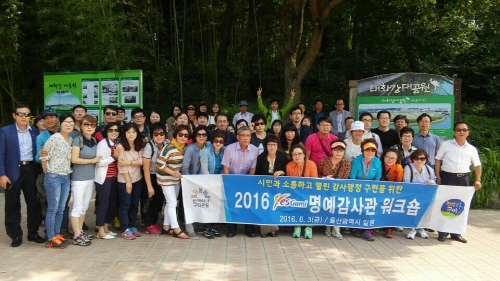 ‘나를 춤추게 하는 웃음’을 주제로 한 권영복 한국 신바람 연구 소장의 특강으로 시작된 워크숍은 개발과 산업폐수 때문에 죽음의 강으로 외면 받았으나, 울산시와 시민들의 노력에 힘입어 1급수를 회복, 연어가 돌아오고 수달이 서식하는 등 전국 최대 철새도래지의 명성까지 얻은 태화강에서 청렴 현장체험을 했다. 이어 지역명소인 대왕암을 견학하기도 했다.