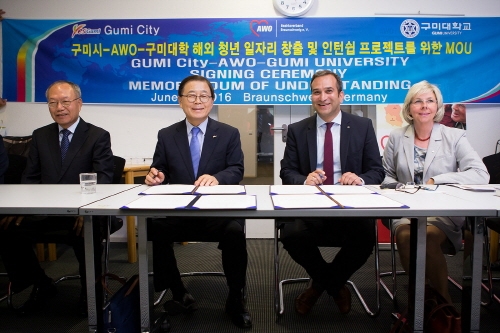 구미지역 청년이 독일로 진출할 수 있는 길이 열렸다. 남유진 구미시장을 단장으로 독일을 방문 중인 ‘독일 투자유치 및 경제협력단(이하, 투자유치단)’은 13일, 독일 AWO(독일어 표기 Die Arbeiterwohlfahrt, 사회복지 협회, 1913년 설립)와 해외청년 일자리창출 인턴십 프로젝트에 관한 MOU를 체결했다.