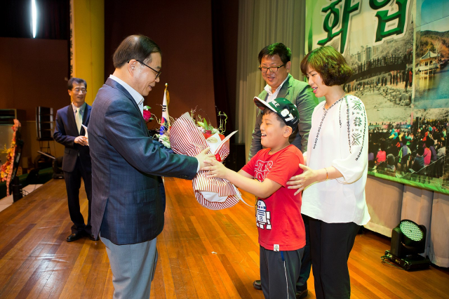 | ↑↑ 5만명째 전입자 꽃다발 증정 |