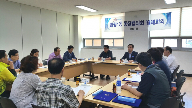 원평1동(동장 남병국)이 24일 2층 소회의실에서 통장 등 15명이 참석한 가운데 행정과 주민의 가교 역할을 수행할 신임·연임 통장 위촉식 및 6월 통장회의를 가졌다.
