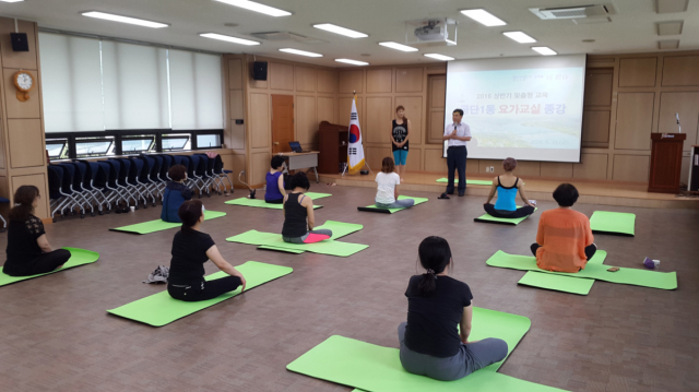 지난 2월 29일에 개강한 상반기 교육은 4개월 간 매주 2회 각 1시간씩 전문 강사의 지도로 실시됐다. 특히 스트레칭과 기본동작은 자세교정과 다이어트효과 등에 좋은 요가 동작들로 구성돼 주민들의 높은 참여 속에 진행됐다.