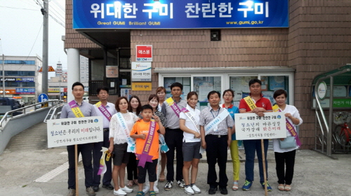 구미시 상모사곡동(동장 이성수)이 27일 동 청소년지도 위원회(위원장 김민채) 회원 및 담당 공무원 등 20여명이 참여한 가운데 청소년 유해환경 지도단속 캠페인을 실시했다.